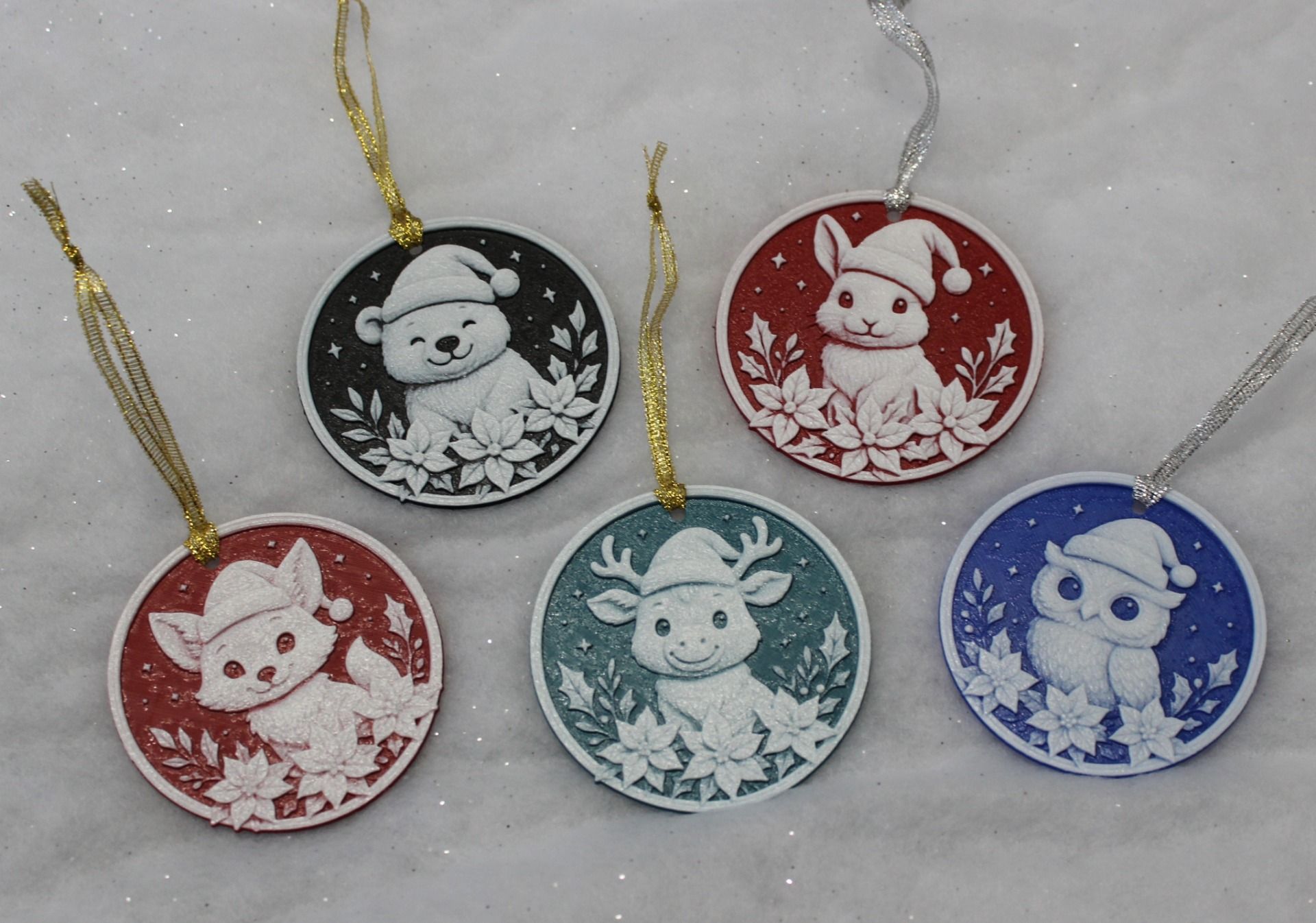 Un Noël enchanté au cœur de la forêt. Apportez une ambiance féerique et chaleureuse à votre décoration de fin d'année avec notre collection "Animaux de la Forêt". Chaque boule, réalisée en impression 3D, présente un adorable petit compagnon portant son bonnet de Père Noël, entouré de détails floraux hivernaux.